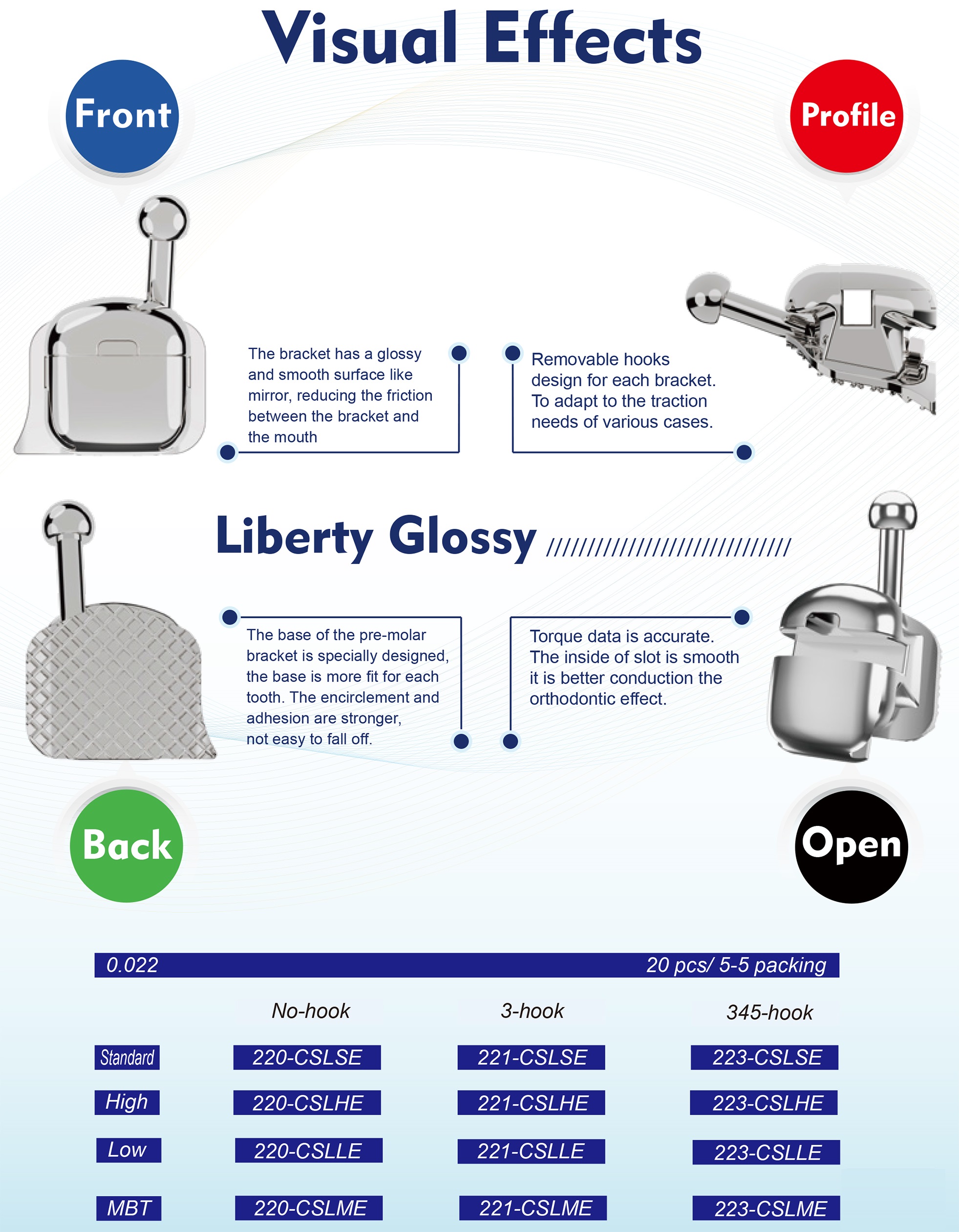 1. 托槽表面呈现镜面效果“自由光泽”与口腔摩擦系数更轻力